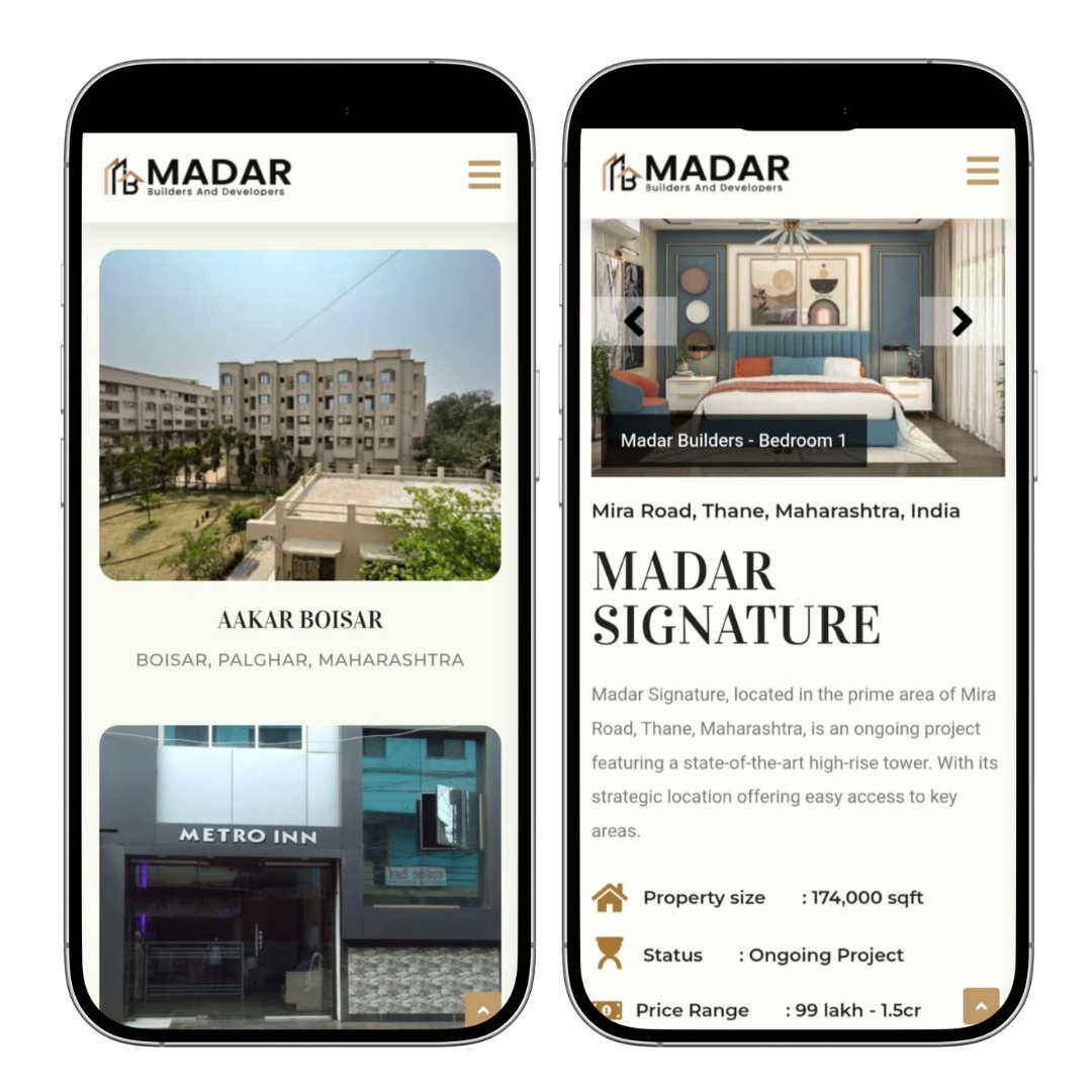 Lead Generation Integration: Strategic contact forms and inquiry sections were integrated into the website to make it easy for potential buyers and investors to connect with the Madar Builders team.